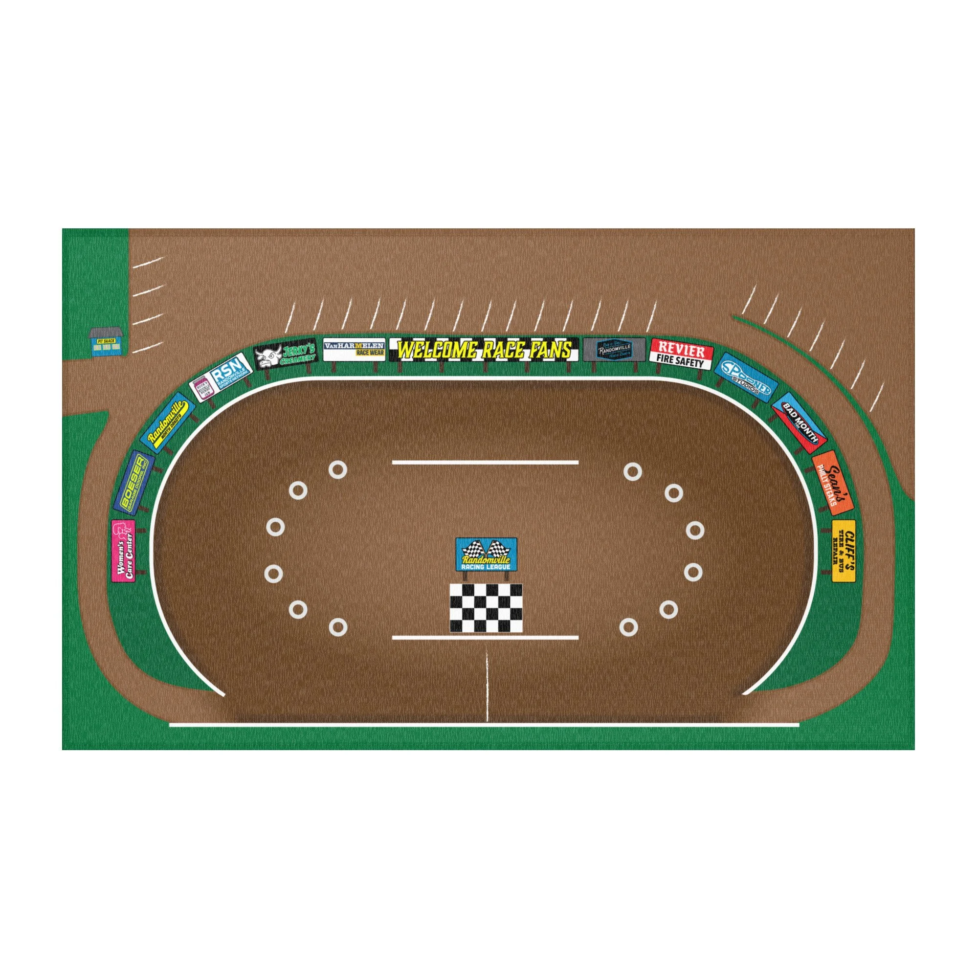START YOUR ENGINES! This is EXACTLY the playmat you wanted as a kid, and now your kids can practice their race craft (or lack thereof) without the consequences of crashing real cars! From the pit parking to the access roads, it's scaled perfectly for 1:64 die cast cars! It's 5" wide on the straightaways and over 7" wide in the turns, so prepare for awesome side-by-side racing!
