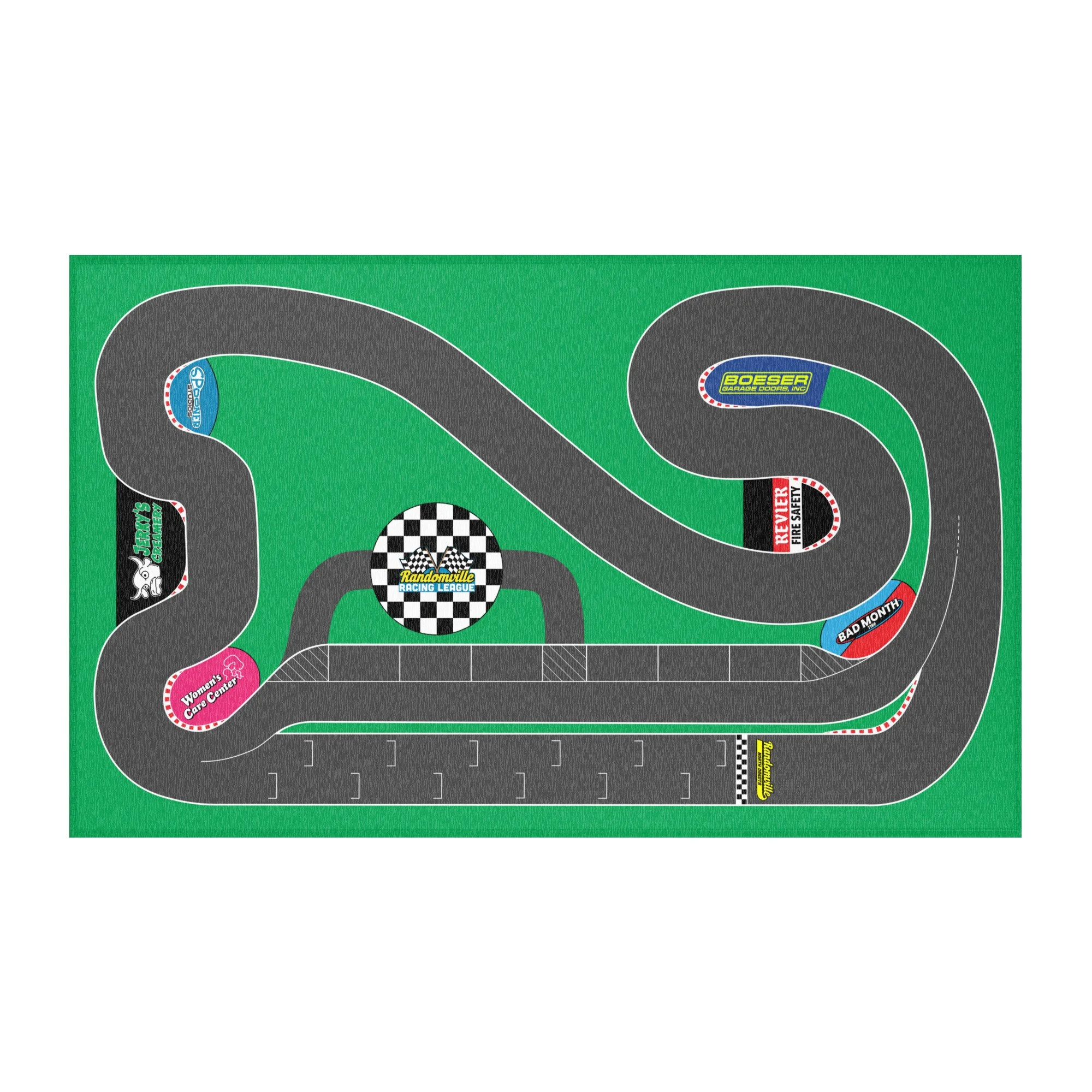 START YOUR ENGINES! This is EXACTLY the playmat you wanted as a kid, and now your kids can practice their race craft (or lack thereof) without the consequences of crashing real cars! It's scaled perfectly for 1:64 die cast cars, from the pit boxes to the grid boxes! And with a 4 1/2" track all the way around, prepare for awesome side-by-side racing!